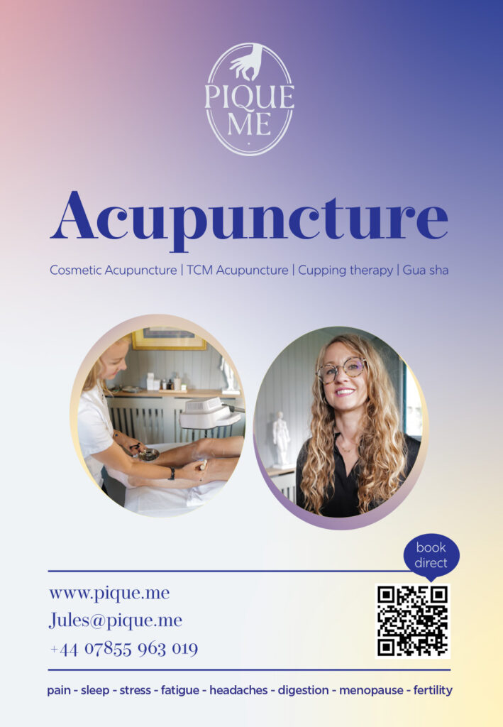 Jules Simonneau Lic. Ac, MBAcC. MAcS CA is a licensed acupuncturist and BACC member offering support for a wide range of conditions including stress, insomnia, hormonal imbalance and skin health. She specialises in facial acupuncture and treats everything from fine lines to jaw tension, always taking a whole-body approach rooted in traditional Chinese medicine. To book or ask a question, you can get in touch at jules@pique.me or visit www.pique.me.